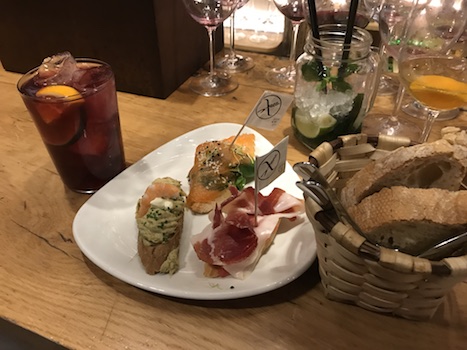 日本にもスペイン料理屋に行くと小皿に乗ったタパスメニューが有ることが多いですが、それをさらに一口サイズにしたものがピンチョスですね。
